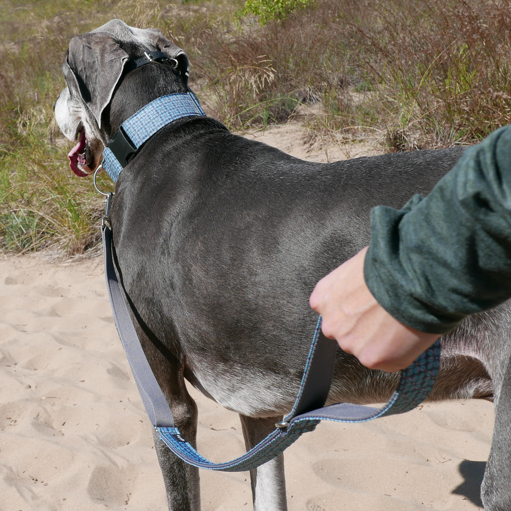 Our thoughtful leash design integrates a second handle near your pup for added control. Featuring our exclusive patterns on water-resistant fabric and recycled webbing this leash not only looks better, but also functions better. When it’s not in use, clip the end of the leash to the d-ring and hang it neatly in your home. 4 feet in length. Upgrade to the Bundle Box (that includes a matching collar) and save $5.